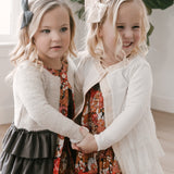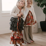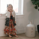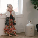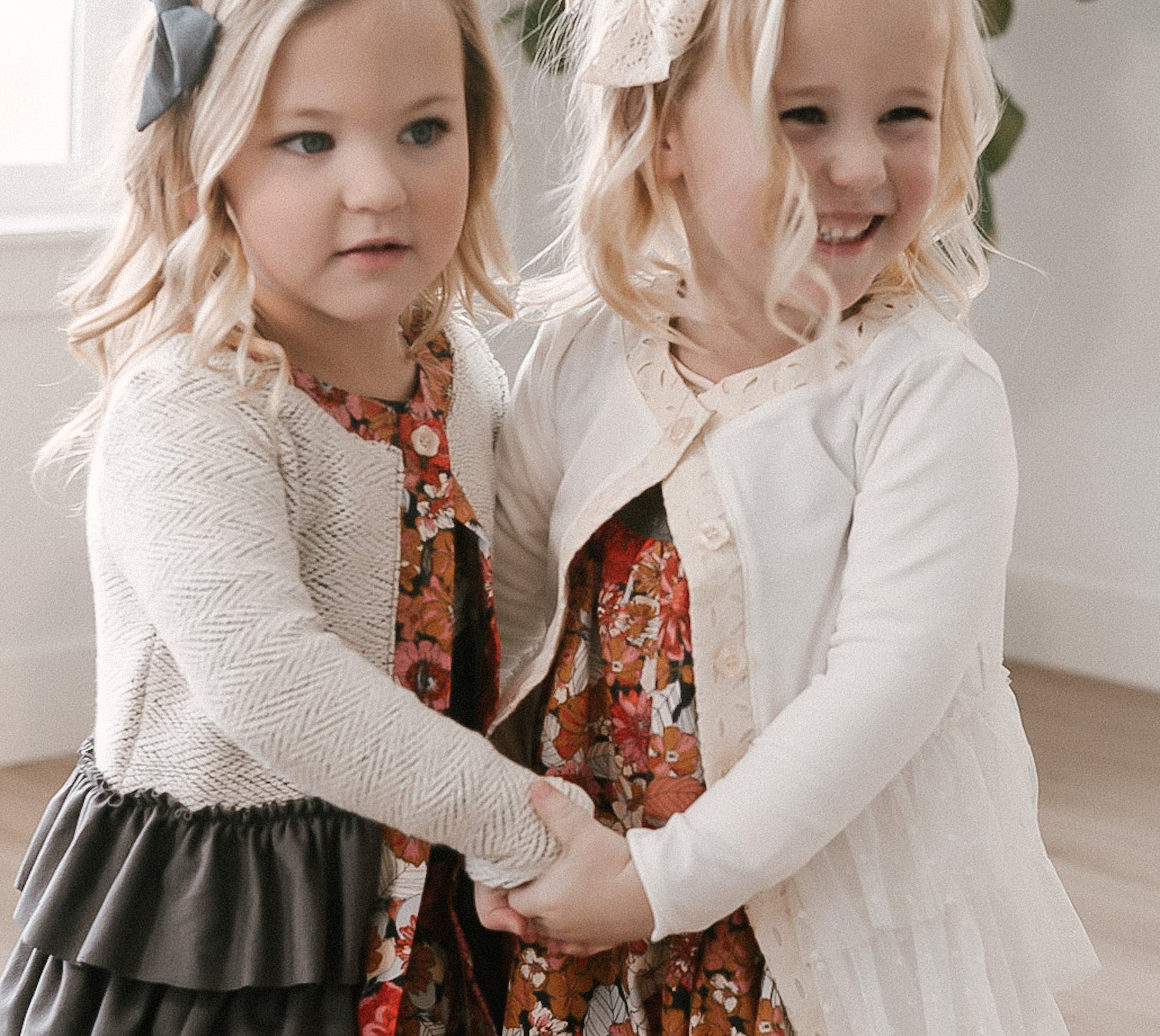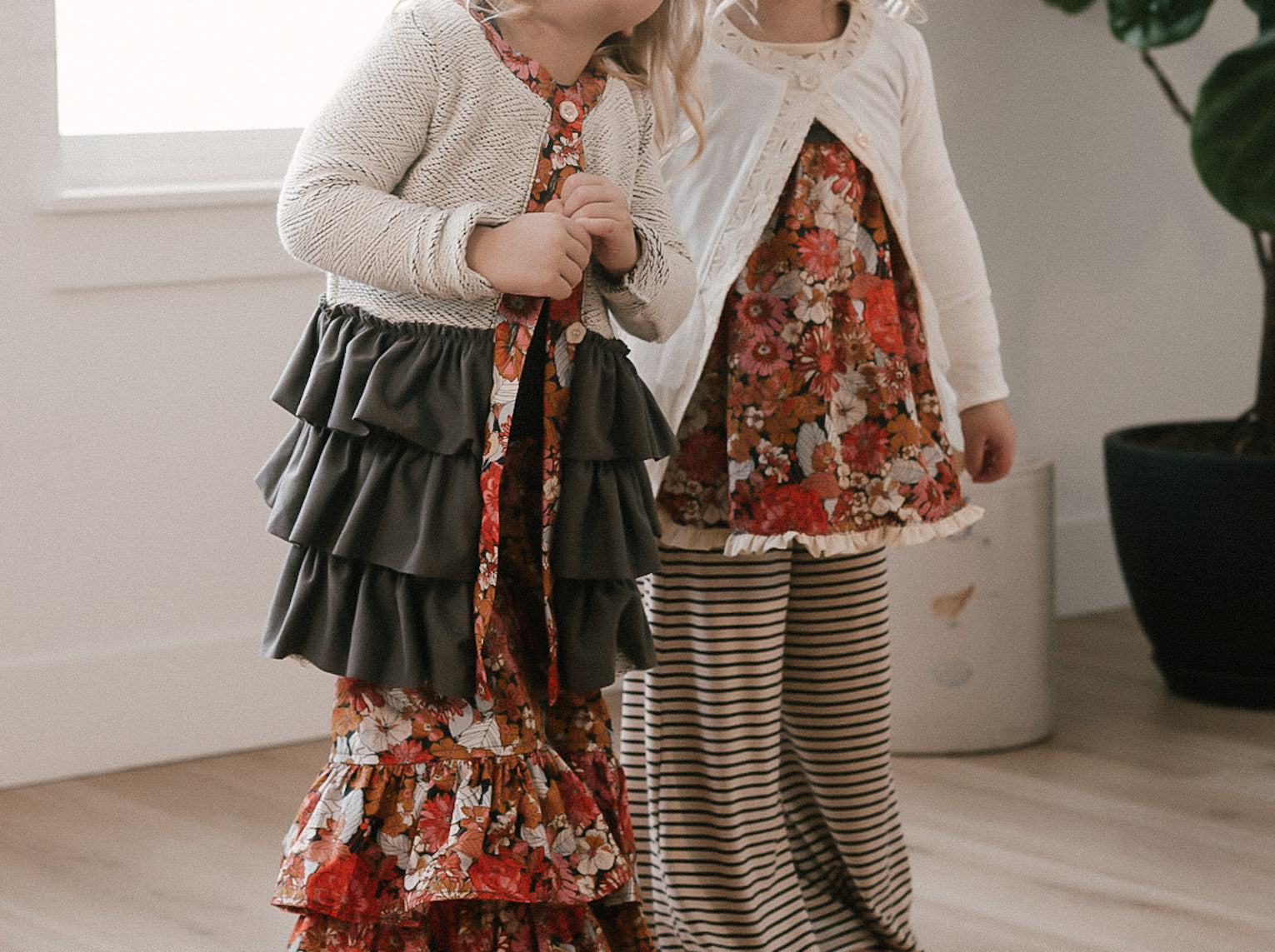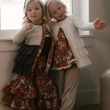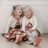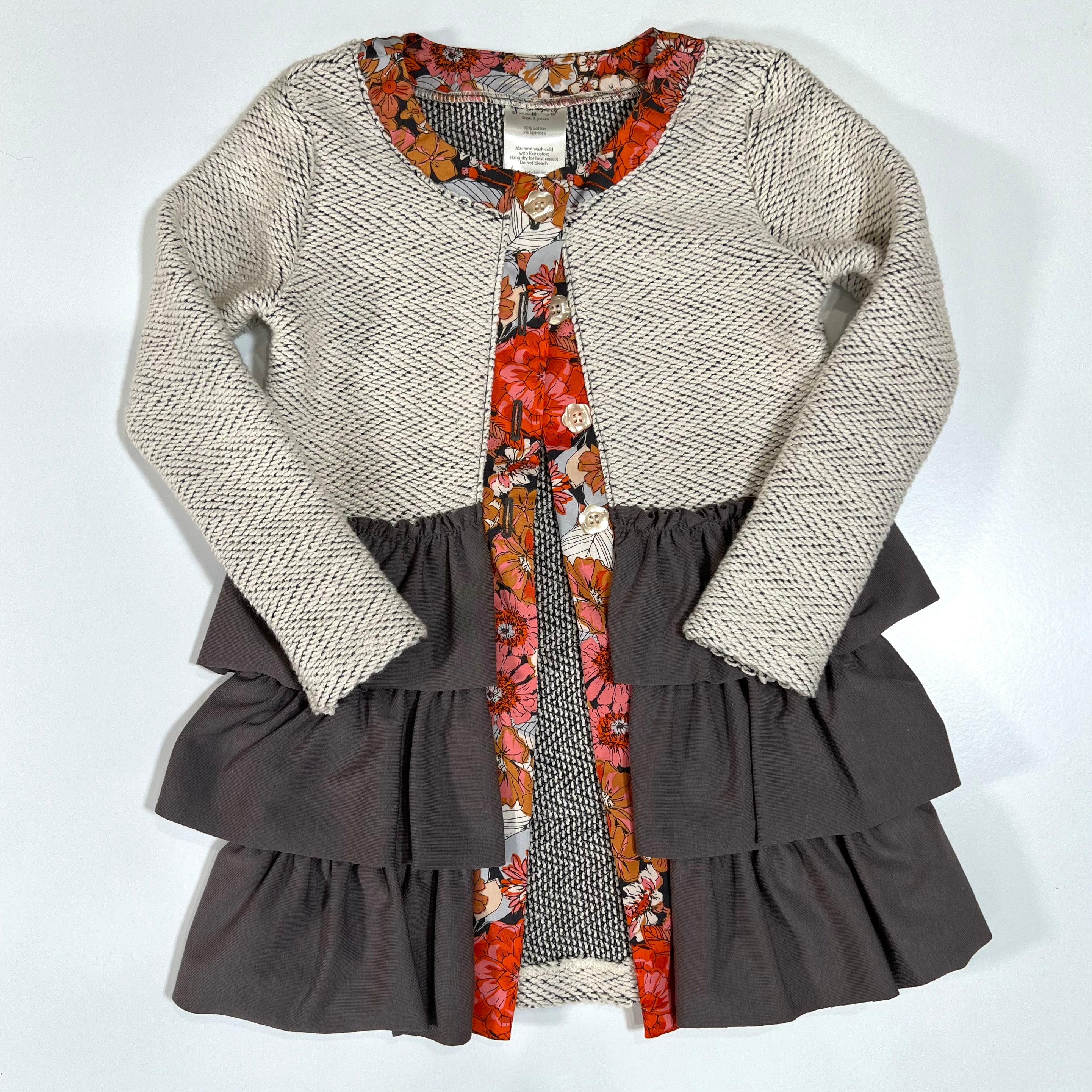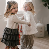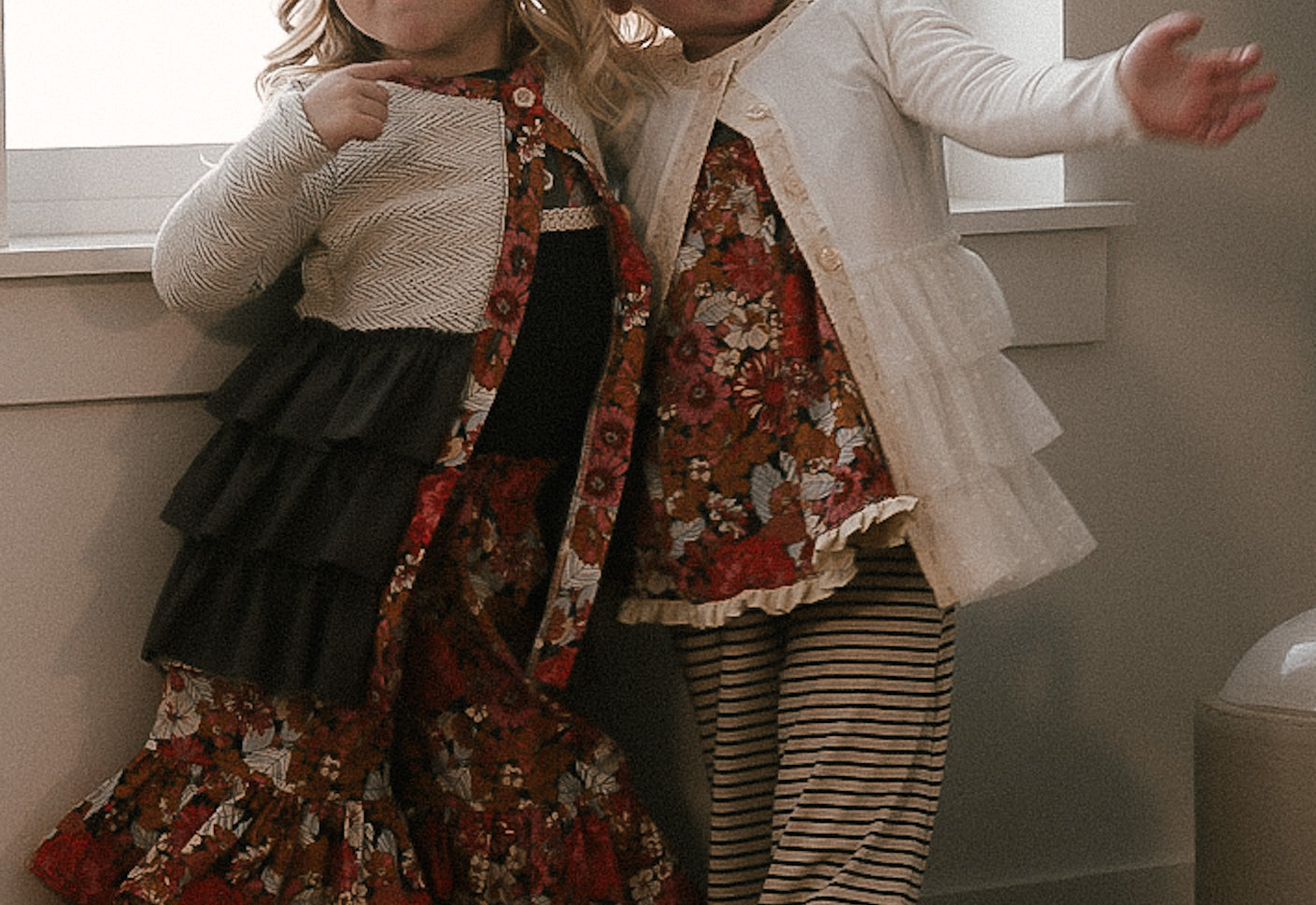The Tess Jacket is such a fun jacket to layer over so many things in the collection. You will love this jacket! Pair with the Double Ruffle Belle Pant, Palazzo Pant, or the Erin Legging and put the Lou Lou Top, Aspyn Top, or Avery top underneath. This is made with a sweatshirt fabric that has a chevron pattern and is two toned with cream and charcoal.