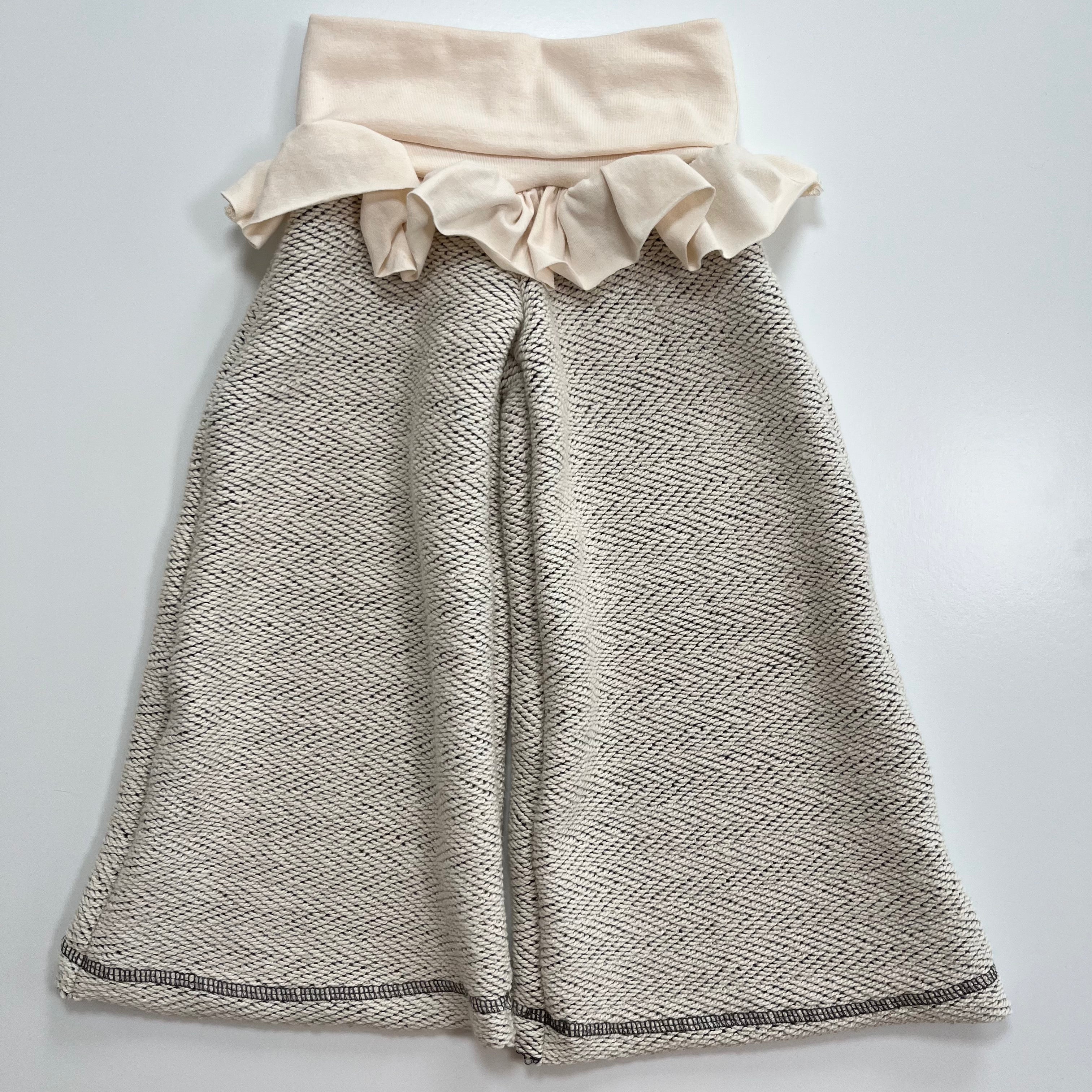 The Palazzo Pant is a personal favorite! Wide flowy leg and a big knit waist band that can be folded over, pulled up, or scrunched. It has a ruffle at the waist except for the 14 and 16 year. Pairs so well with the Lou Lou Top, Aspyn Top, Avery Top, Playdate Top, and Tess Jacket. This has a cute raw edge and a stitch to stop from fraying.