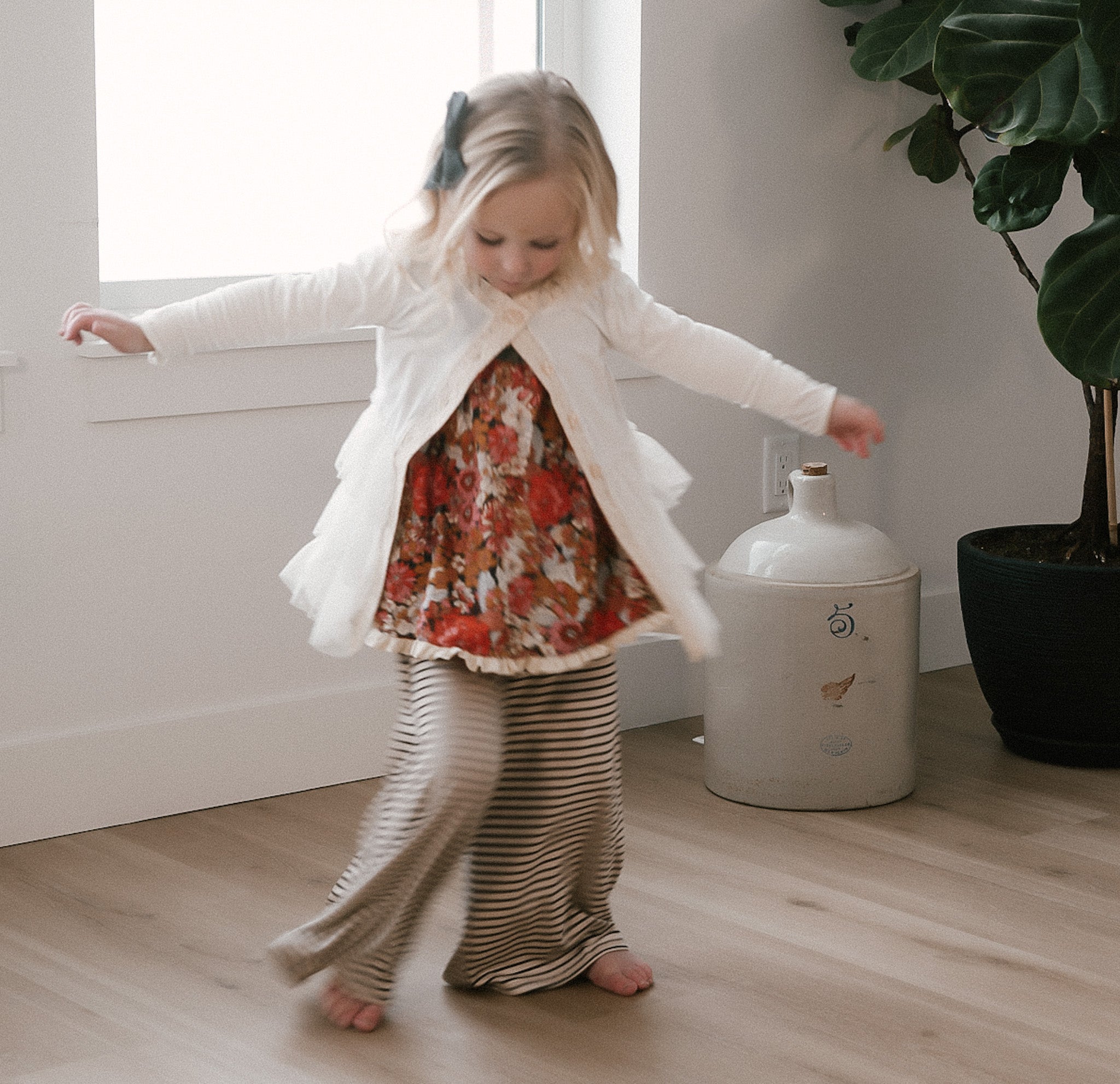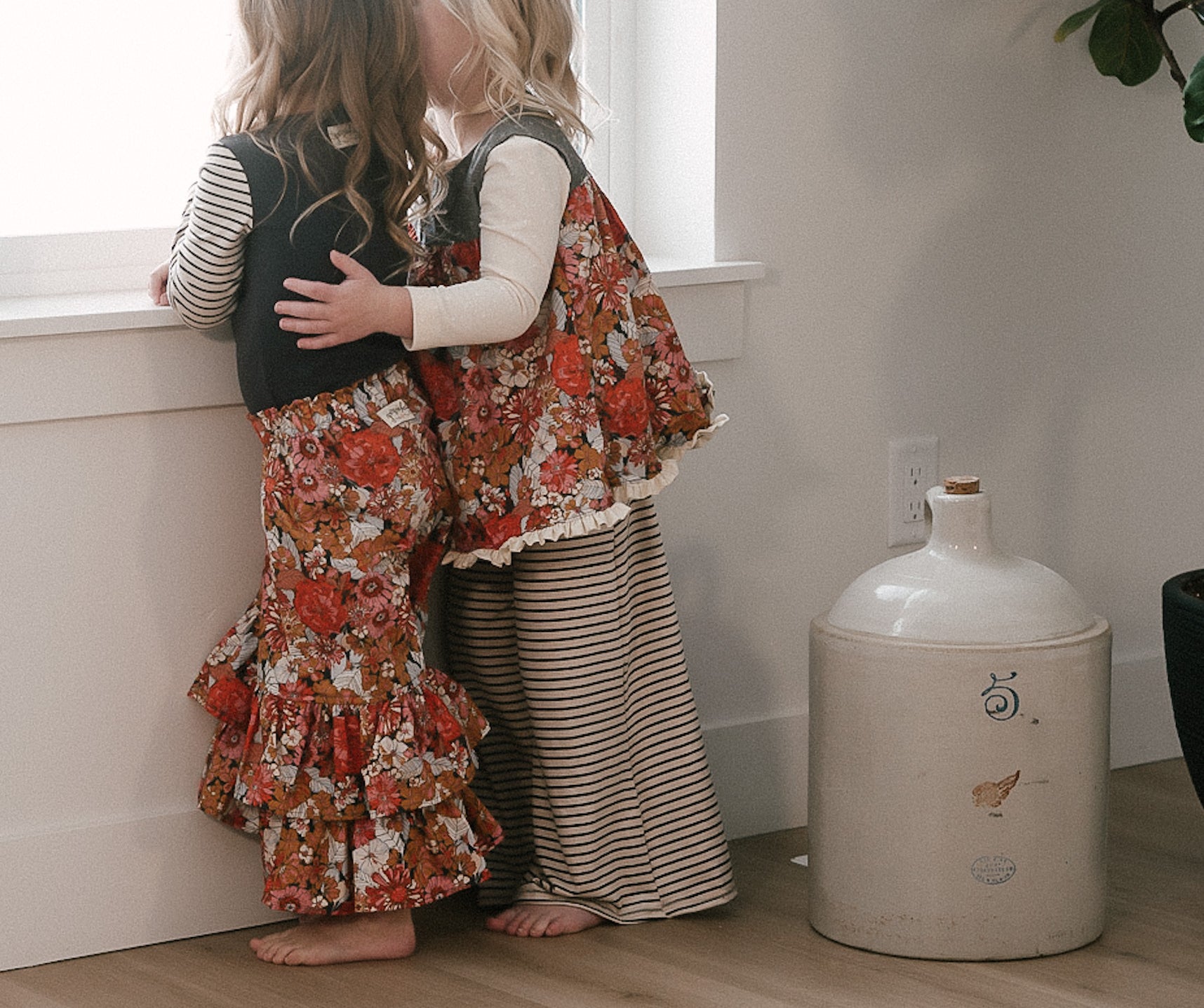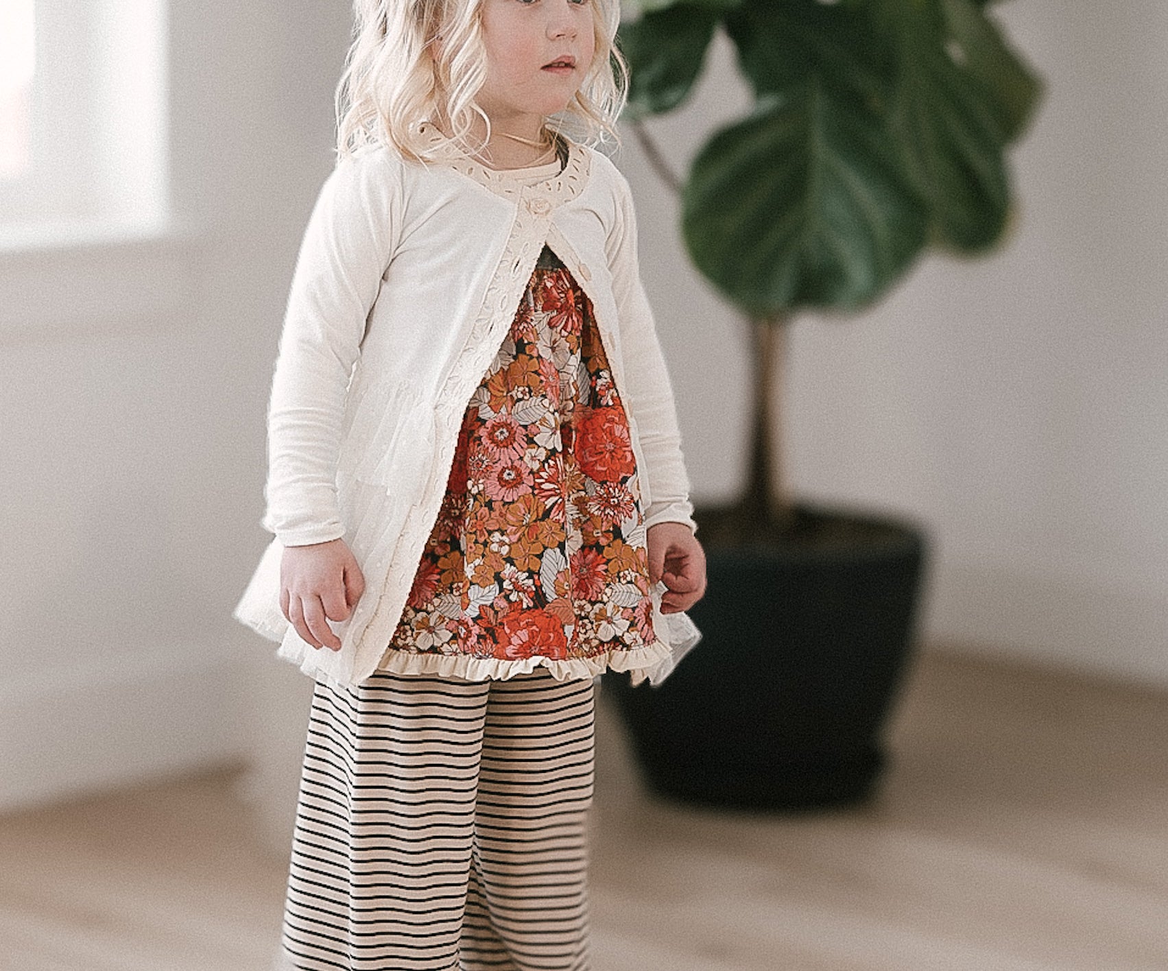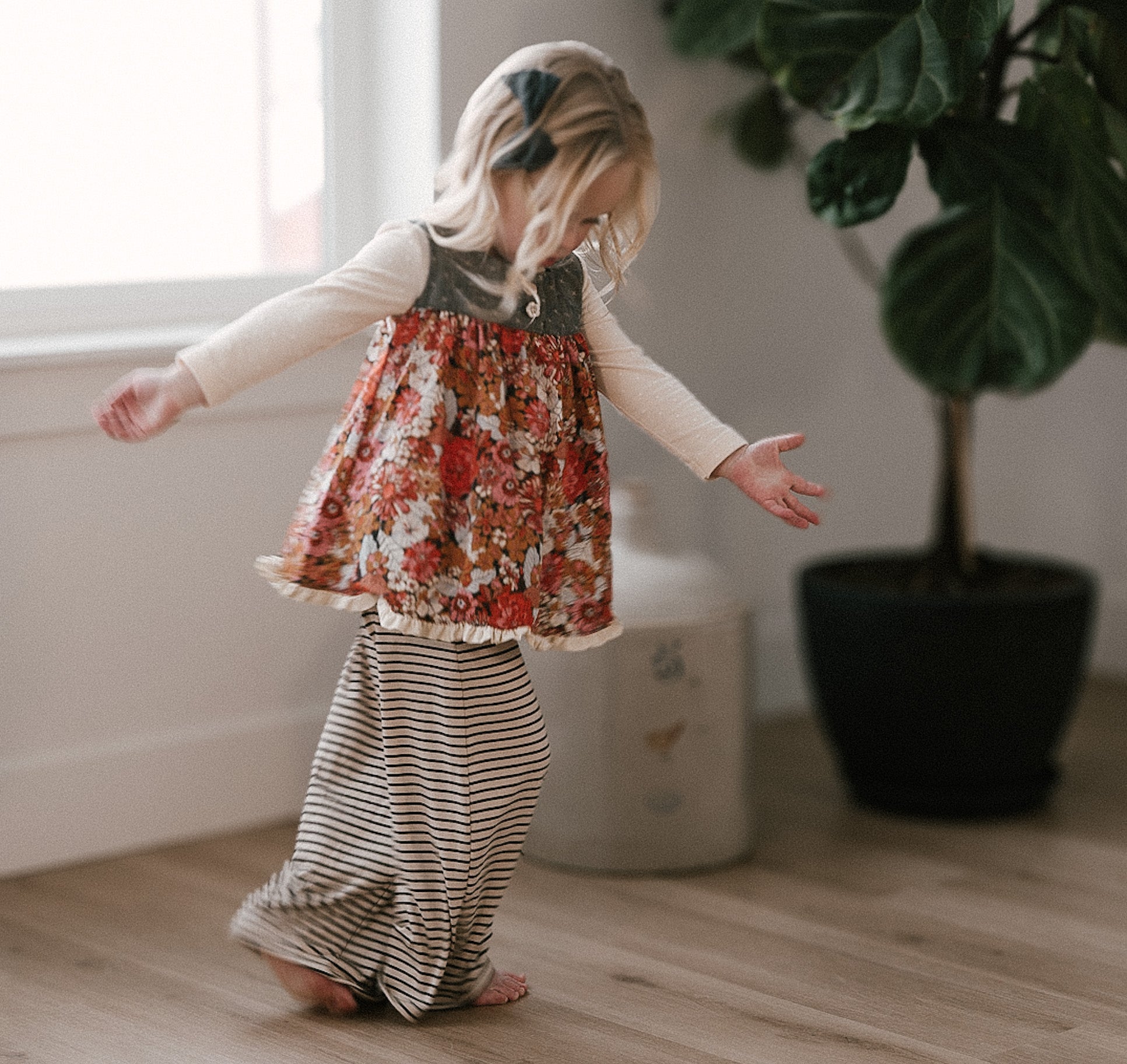 The Palazzo Pant is a personal favorite! Wide flowy leg and a big knit waist band that can be folded over, pulled up, or scrunched. It has a ruffle at the waist except for the 14 and 16 year. Pairs so well with the Lou Lou Top, Aspyn Top, Avery Top, Playdate Top, and Tess Jacket. The stripe is so adorable!