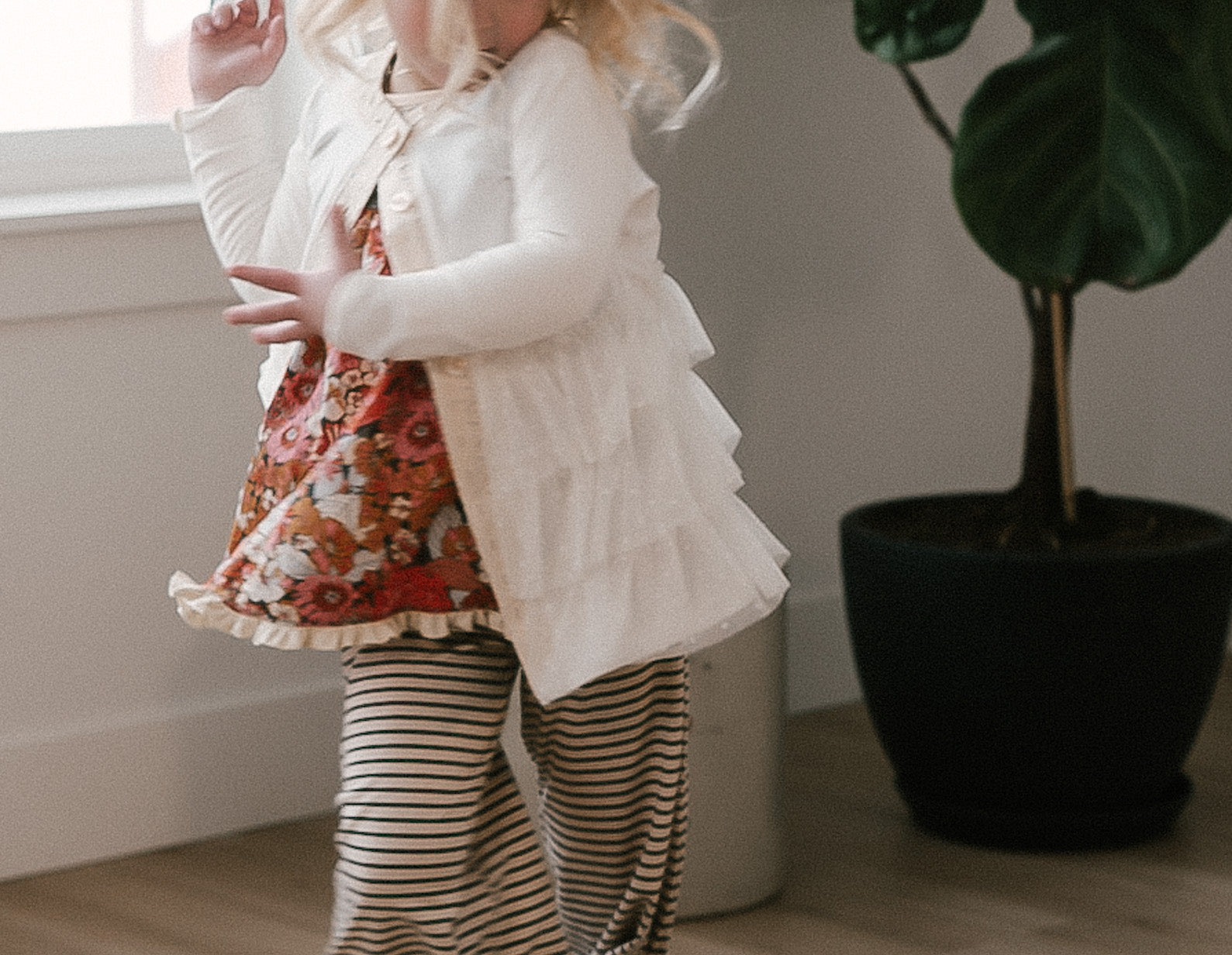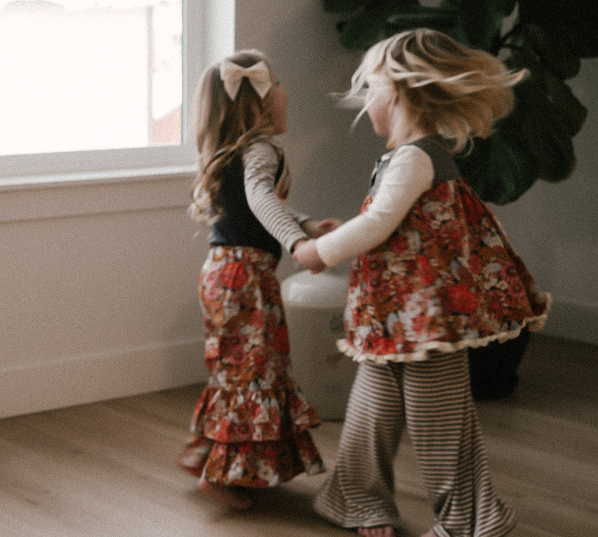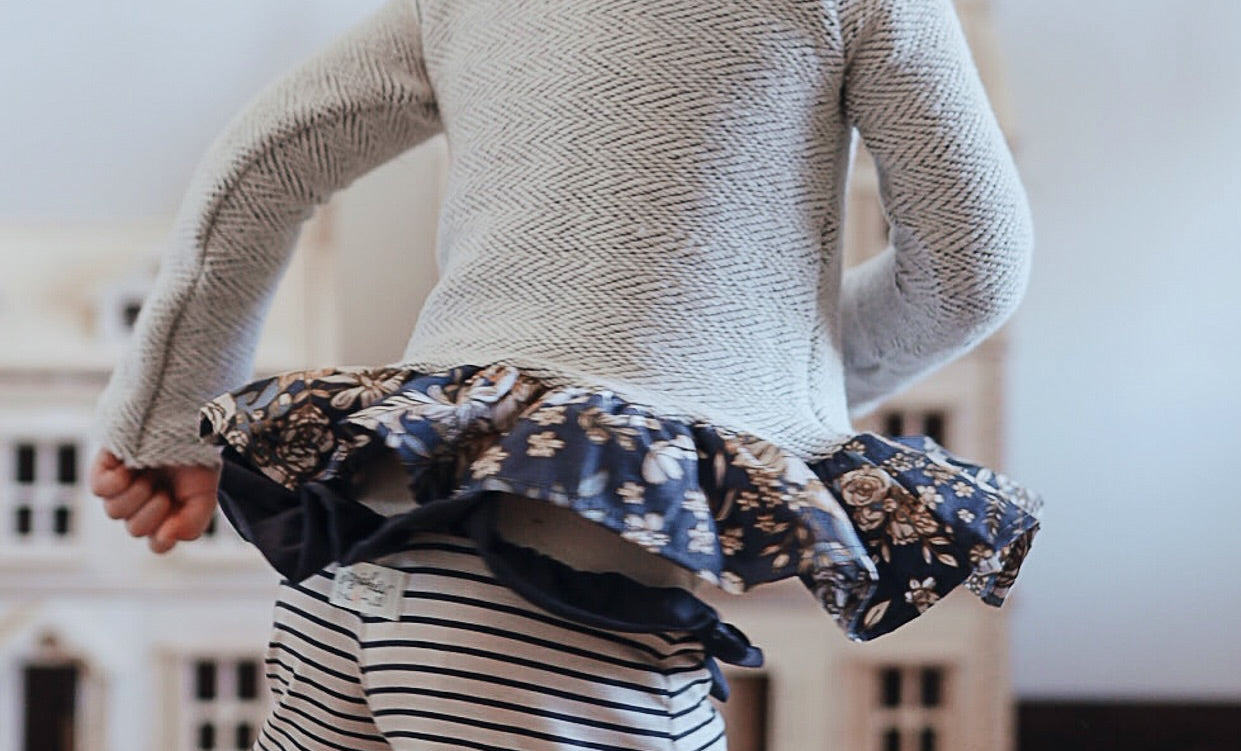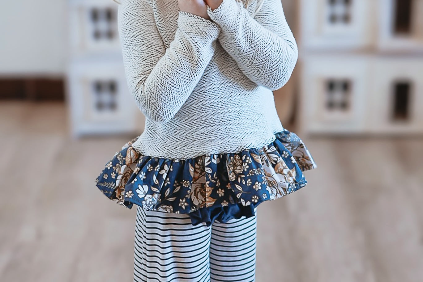 The Palazzo Pant is a personal favorite! Wide flowy leg and a big knit waist band that can be folded over, pulled up, or scrunched. It has a ruffle at the waist except for the 14 and 16 year. Pairs so well with the Lou Lou Top, Aspyn Top, Avery Top, Playdate Top, and Tess Jacket. The stripe is so adorable!