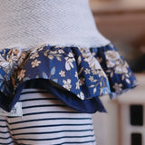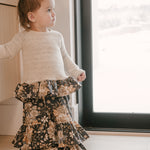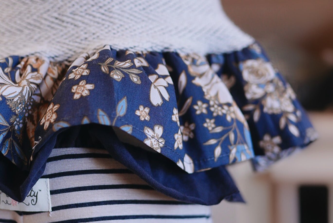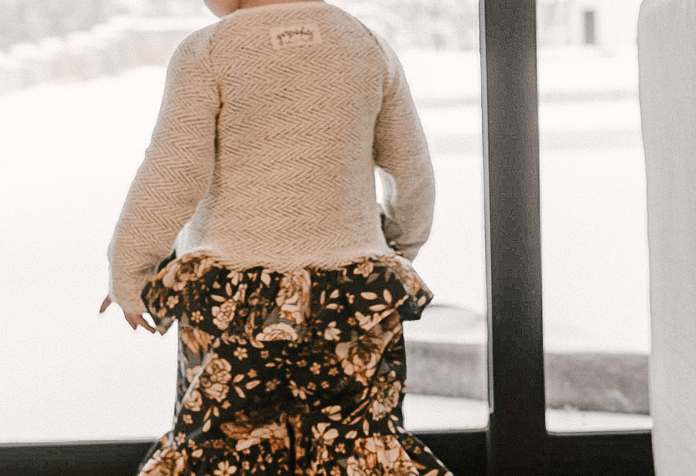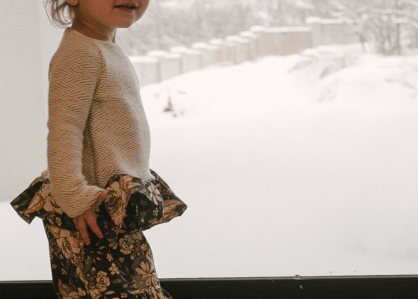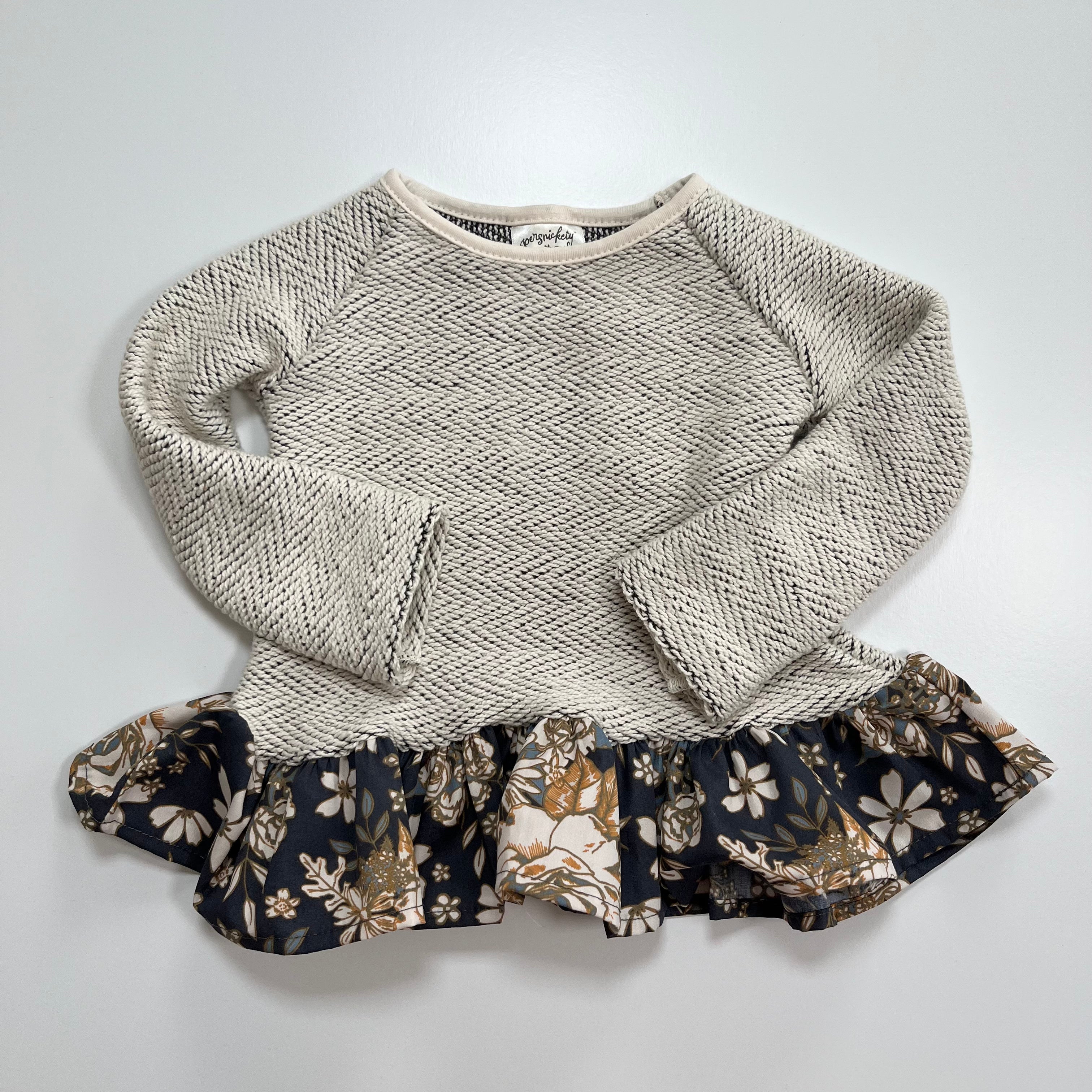 Who doesn't want to wear sweats with ruffles so you can be cozy + adorable!? The Playdate Top has the cutest raglan sleeve with a slight flair and a contrast neck binding. She is the perfect playdate outfit and especially when paired with the Erin Legging, Double Ruffle Belle Pant, or Palazzo Pant. You will love this one!