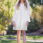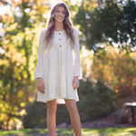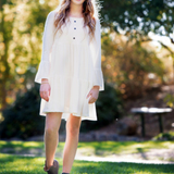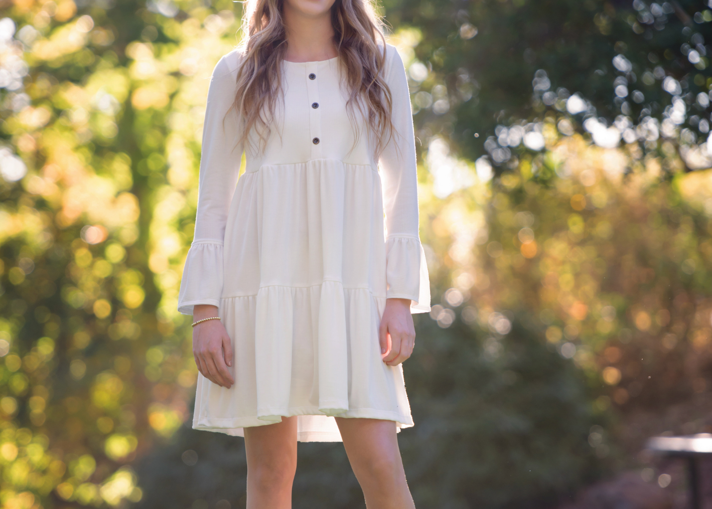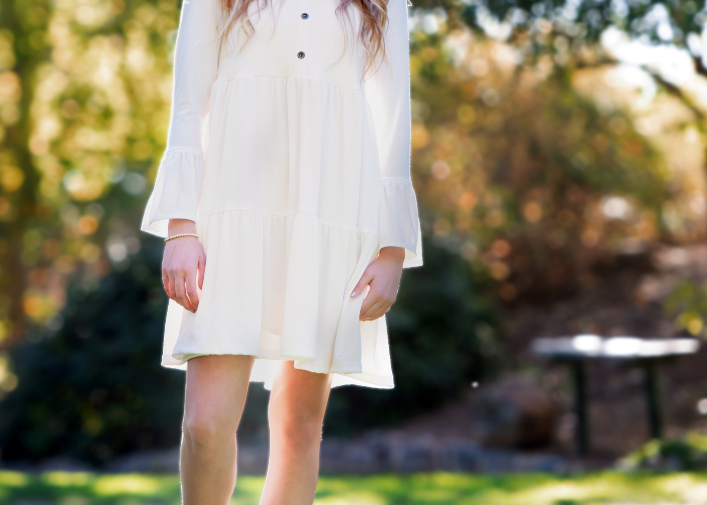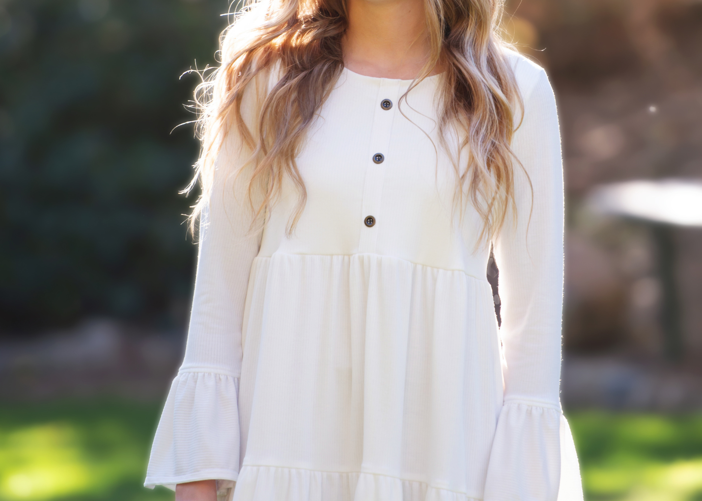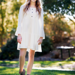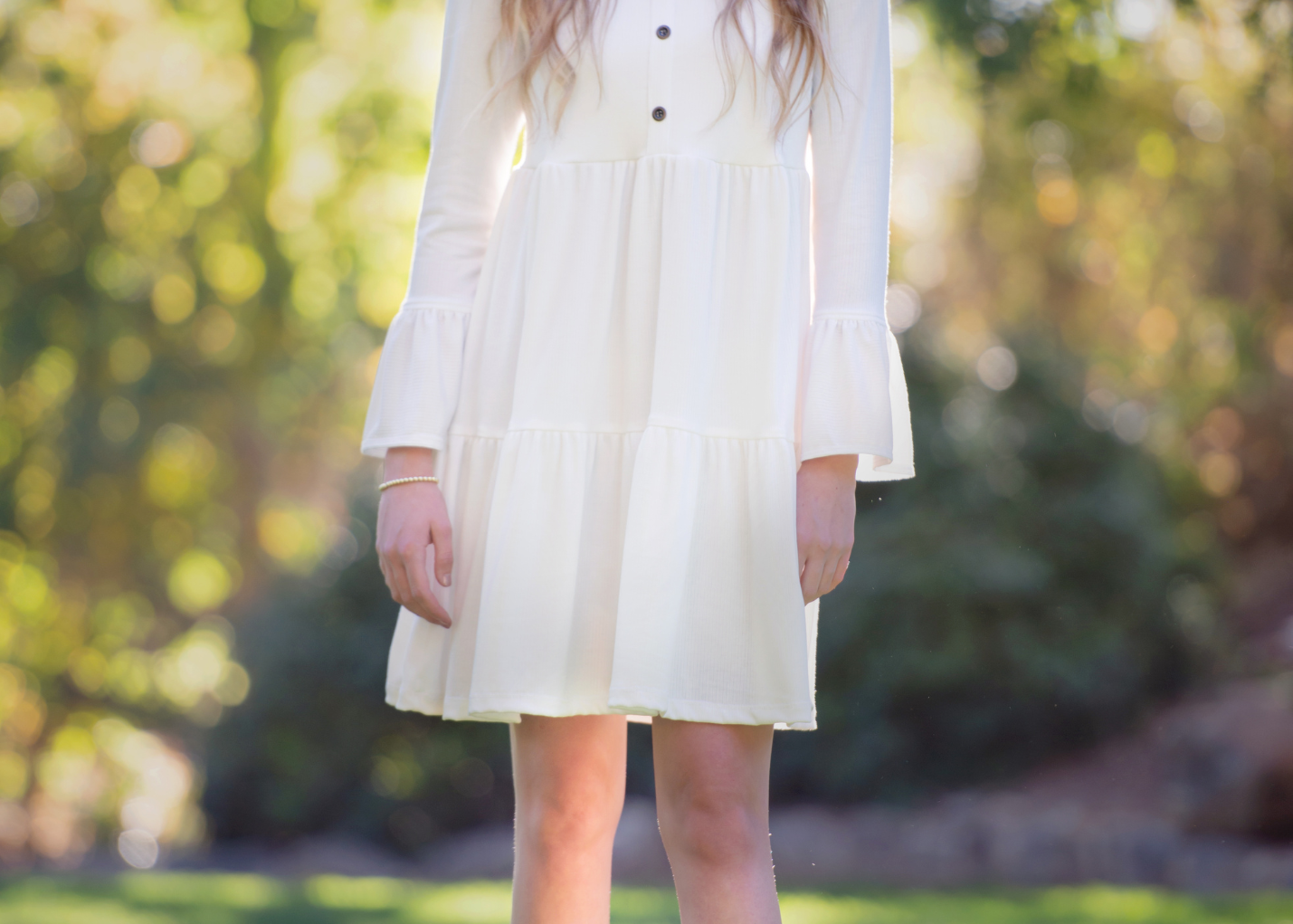 The Zoe Dress is going to be her go to dress for the fall and winter season. It is so soft, so flowy, and so comfortable. It is feminine, but not too much. The gathered ruffle on the sleeve gives it that perfect boho feel. She can twirl in it yet it doesn't poof out making her feel like a kid but she will still feel like she can dance in it.