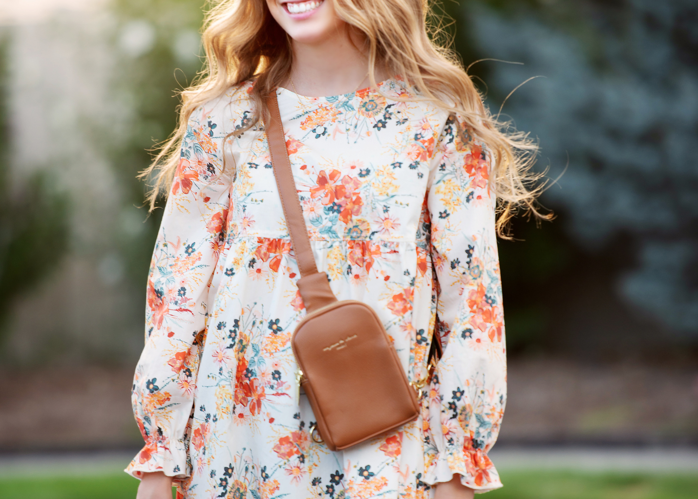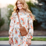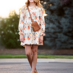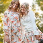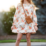The Babydoll Dress is the perfect teen dress for the cozy fall season. This dress has a simple silhouette that has a high waist, a full gathered sleeve, and the perfect floral bouquet print is so perfect for the season. This is an easy dress to wear as it has extra room and won't fit uncomfortably tight. Layer some cute leggings or wide leg pants under for a fun look on those cooler days. This dress and floral pairs perfectly with the Lily skirt and Penelope Anne Dress and perfect for fall pictures.